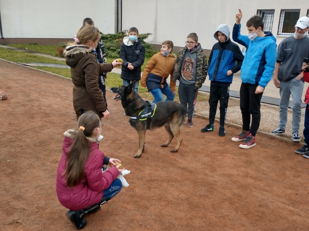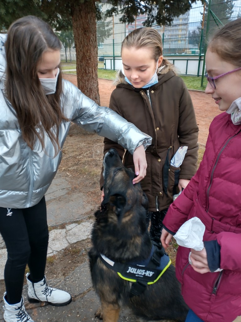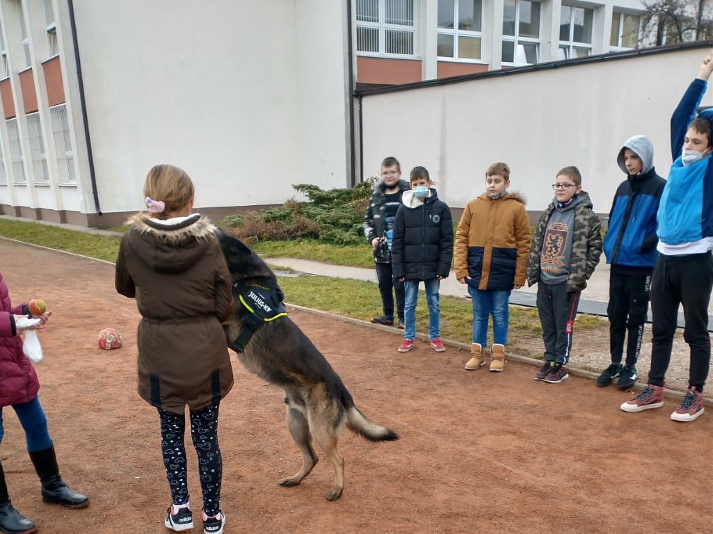 Všetkých milo prekvapila práve Vaneska. Svoj projekt o jej miláčikovi - belgickom ovčiakovi menom Bony poňala netradične. Na hodinu biológie priviedla na školské ihrisko svojho 4-nohého kamaráta, ktorého úplne sama trénuje už 6 a pol roka. Na úvod ho zoznámila so svojimi spolužiakmi. Deti mali možnosť pohladkať psíka a nadviazať s ním priateľský kontakt..