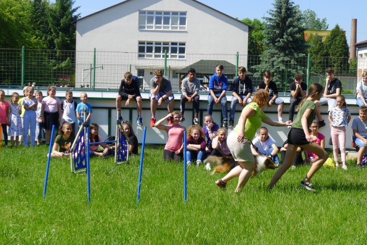 Skupiny žiakov rotovali medzi stanoviskami, na každom bol inštruktor a pes. Stanoviská boli zamerané na :