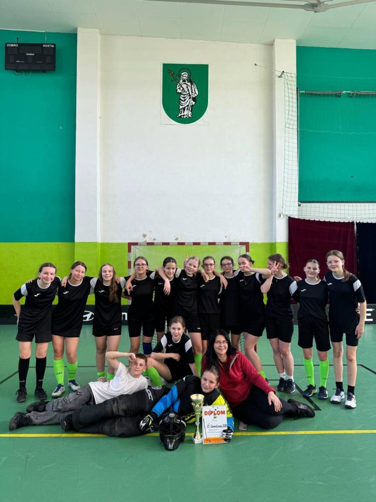 Prajeme dievčatám: Nikole Škorikovej, Rebeke Masarykovej zo 7.A, Laure Sidorovej zo 7.B, Laure Škorvánkovej, Karolíne Slivoňovej, Simone Blahovcovej, Lilien Kandrovej zo 6.A, Alexandre Vlčkovej, Radke Knotkovej, Tamare Salajovej zo 6.B, Michaele Maráčkovej z 9.A, Barbore Tothovej, Alžbete Chupekovej, Vanese Neslušanovej a Sáre Benkovej z 9.B veľa šťastia, úspechov, víťazných gólov a čo najlepšie umiestnenie v ďalšom celoslovenskom kole!
