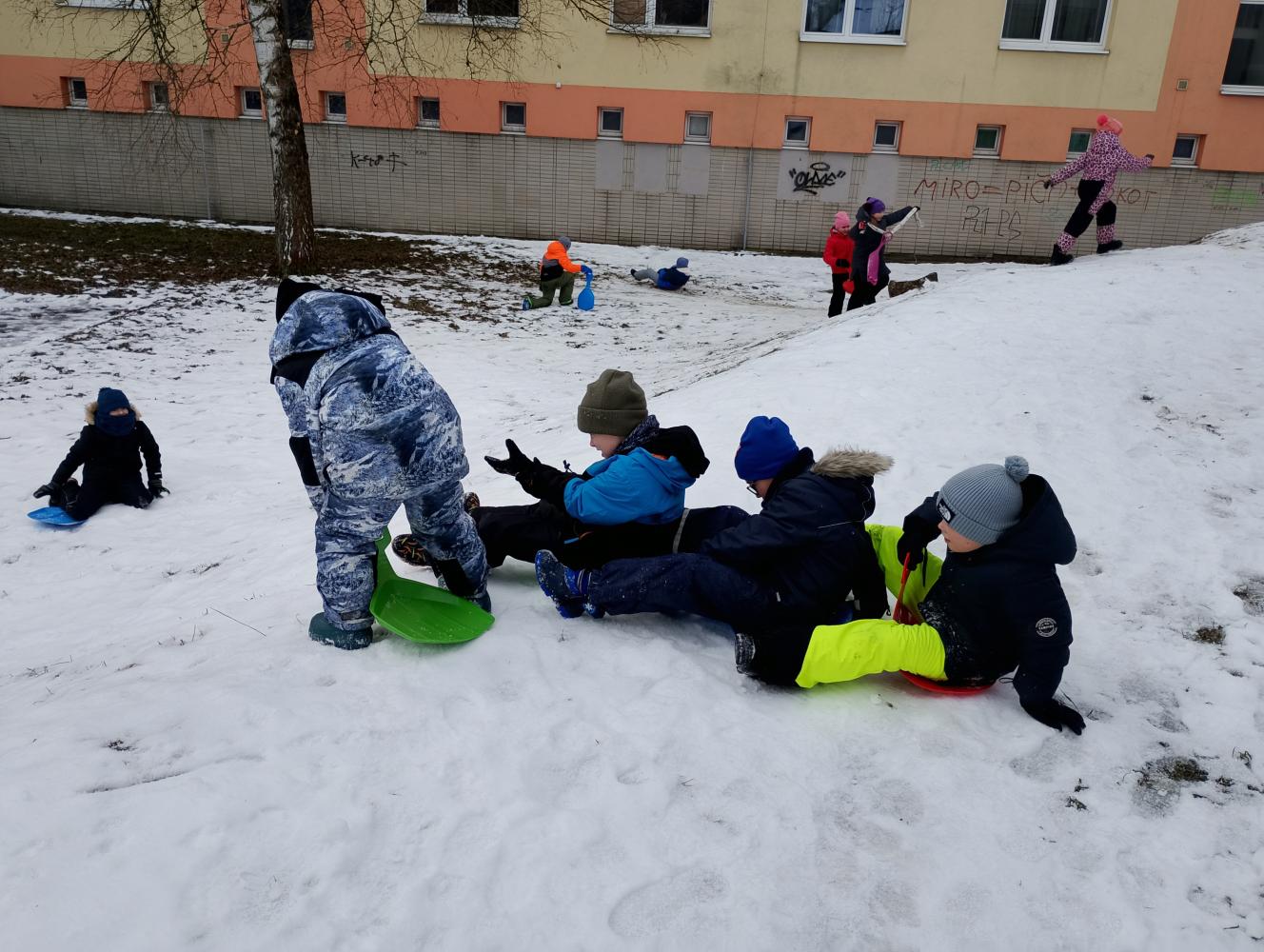 Využili sme posledné biele vločky tejto zimy naplno – šantenie, smiech a nekonečná energia zaplnili celé ihrisko. Spolupráca medzi triedami bola nádherná, starší pomáhali mladším, mladší rozdávali úsmevy na všetky strany.
