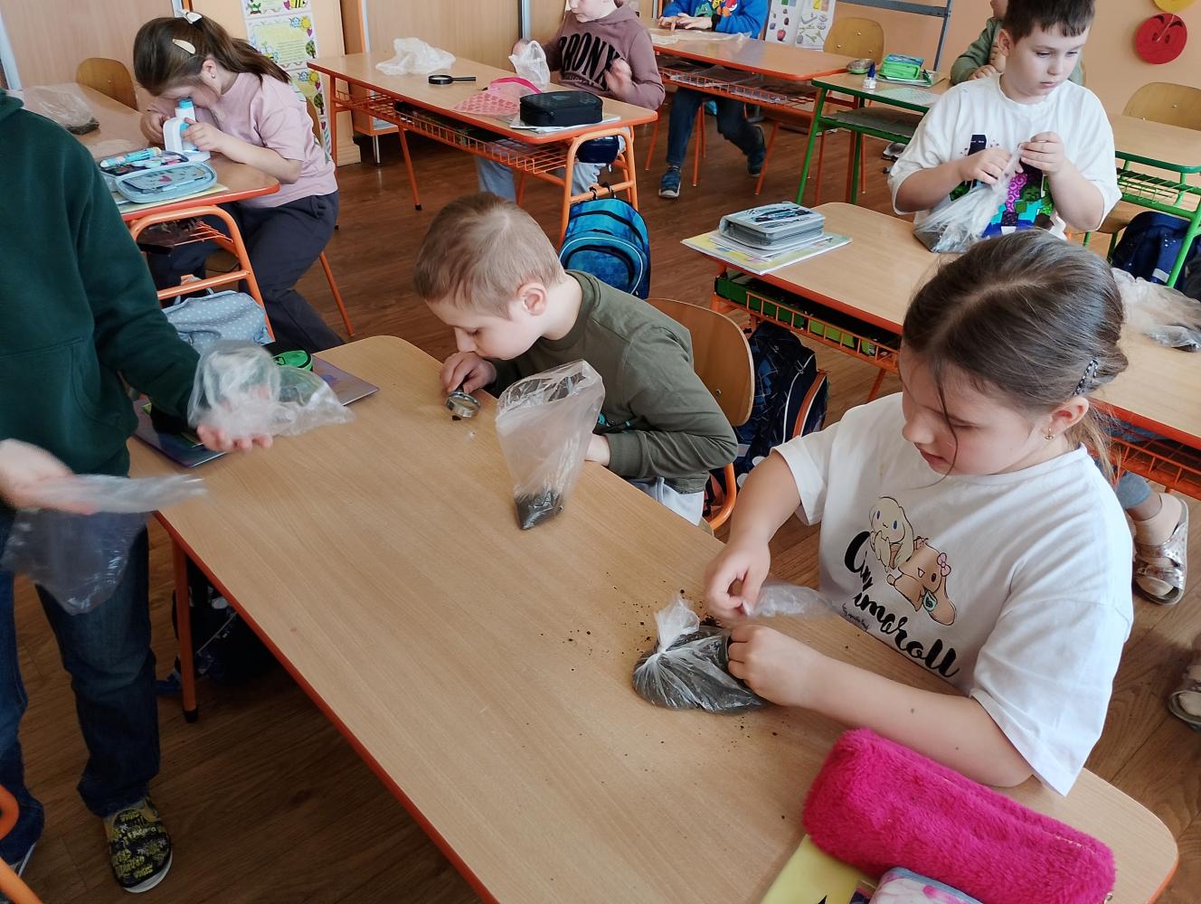 Na hodine prvouky v 2.B sme skúmali pôdu. Žiaci si priniesli vrecko s pôdou a pomocou lupy ju pozorovali ako malí vedci. Skúmali, z čoho sa pôda skladá, a zisťovali sme aj prítomnosť vody v pôde. Objavovanie bolo plné zábavy, radosti a spolupráce. Deti pracovali s veľkým nadšením a učenie sa premenilo na malé dobrodružstvo.