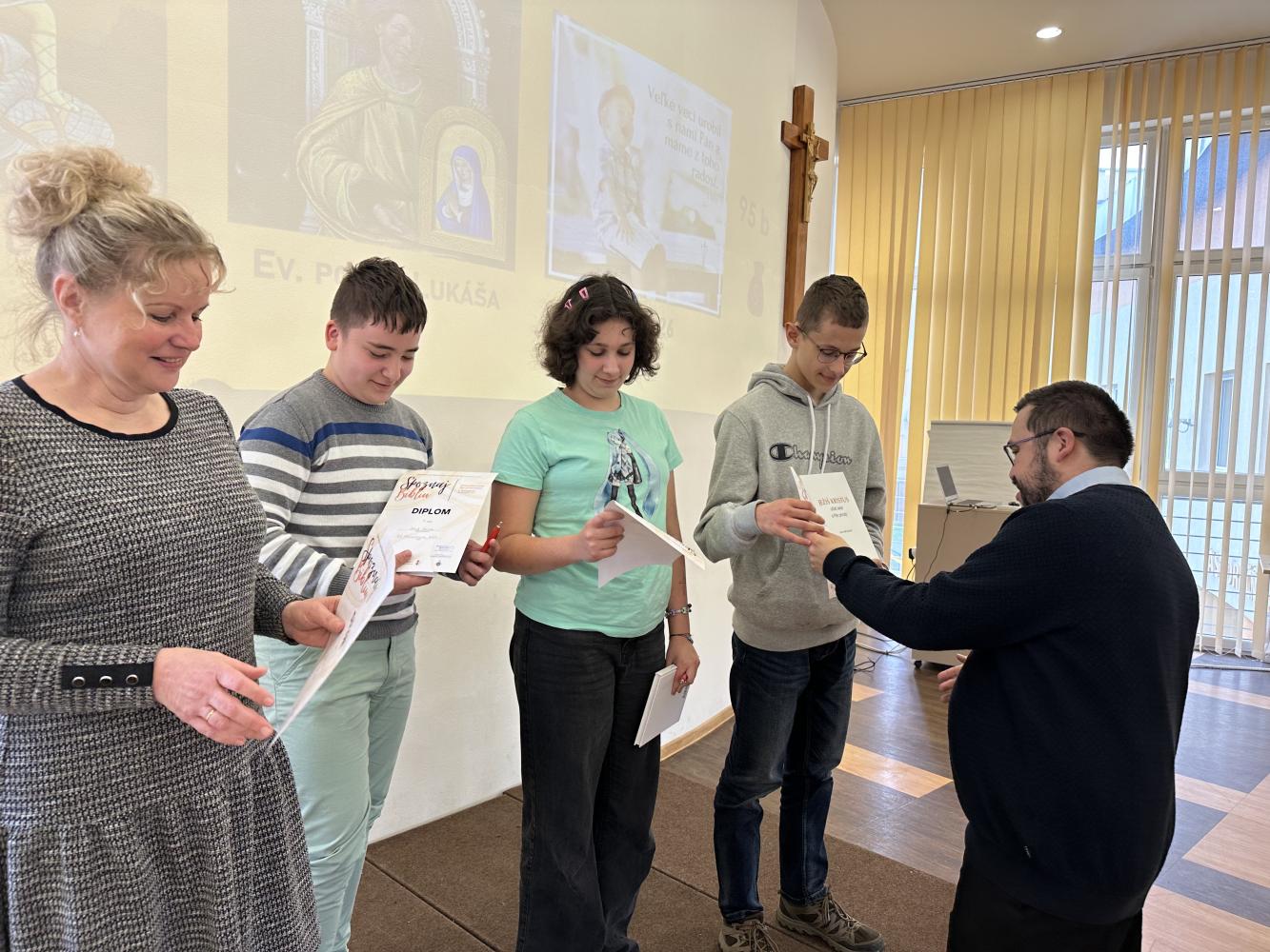 Dňa 24. marca 2026 sa v CVČ sv. Jakuba konalo dekanátne kolo vedomostnej súťaže Spoznaj Bibliu. Do súťaže sa zapojili aj žiaci našej školy: Andrea Čuboňová, Jakub Šarina, Marek Hozza, ktorí nás reprezentovali svojimi vedomosťami z oblasti Svätého písma. Naši žiaci sa na súťaž poctivo pripravovali a ich snaha priniesla krásny výsledok. V silnej konkurencii si vybojovali 1. miesto, čím potvrdili svoje vedomosti a tímovú spoluprácu. Žiakom srdečne blahoželáme k výbornému výsledku a ďakujeme za vzornú reprezentáciu školy. Tešíme sa z ich úspechu a prajeme veľa šťastia v ďalšom kole súťaže.