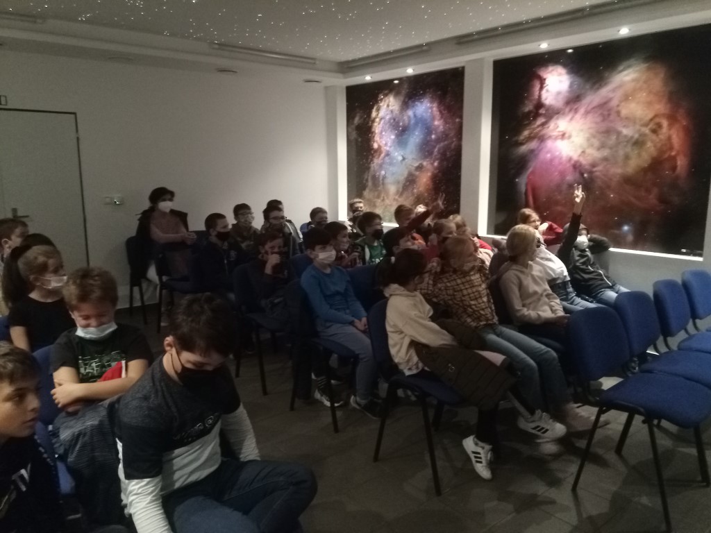 Dňa 5. 10. 2021  sa   žiaci zo 4.A a 4.B zúčastnili exkurzie, ktorá bola v Kysuckej  hvezdárni v Kysuckom Novom Meste. V úvode im bolo jednoduchou formou vysvetlené učivo s názvom Slnečná sústava, ktorá žiakov veľmi zaujala. Po príchode do hvezdárne vyšlo aj slnko, a tak   sa žiaci presunuli do kupoly, kde pomocou ďalekohľadu  skúmali Slnko a jeho škvrny.  Postupne  prešli k vesmírnym váham a následne až k  slnečným hodinám.  Za pomoci milých sprievodkýň si objasnili nejasnosti a uspokojili tak svoju zvedavosť.  Na koniec návštevy si žiaci pozreli 3D film s názvom Shrek.  Exkurzia bola veľmi zaujímavá a poučná. Plný nových informácií a zážitkov sa žiaci vrátili na svoju základňu – do školy.