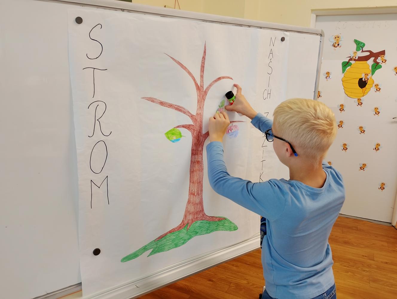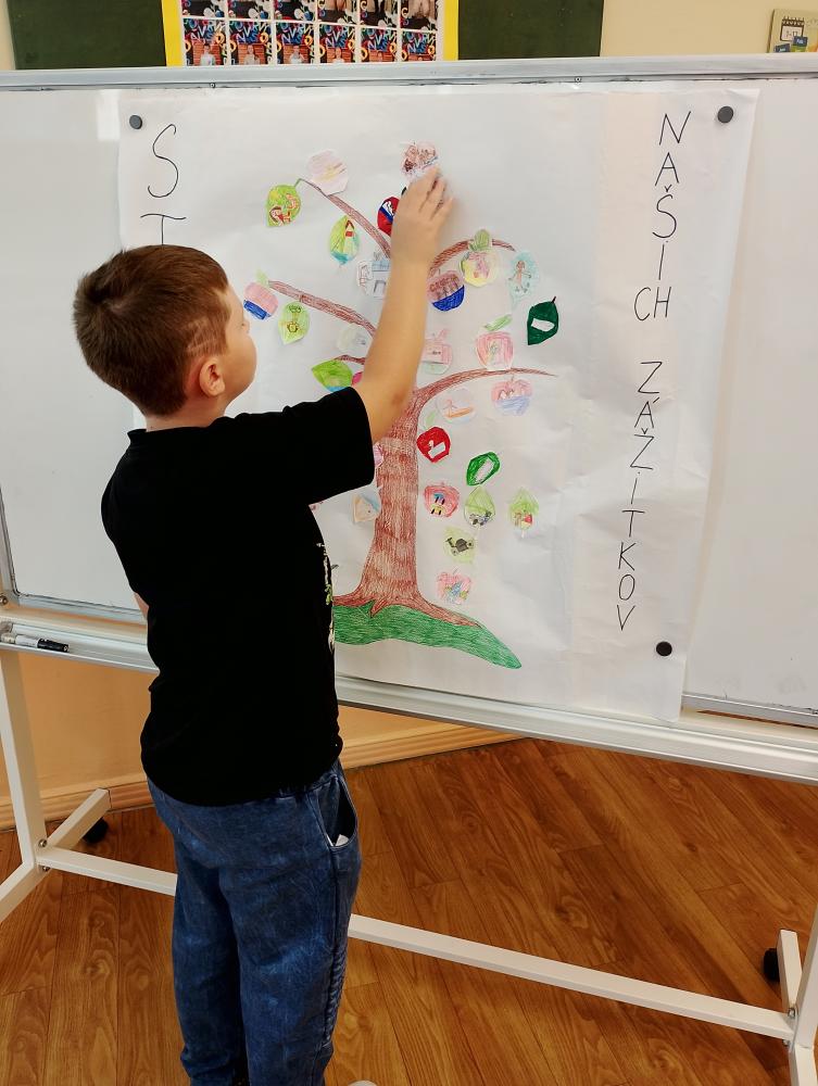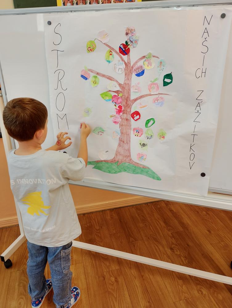 Na hodine výtvarnej výchovy sa deti z 2. B pustili do tvorenia Stromu zážitkov z prázdnin. Každý žiak znázornil svoj najkrajší prázdninový zážitok na jabĺčku alebo lístočku, a potom ich všetky spolu nalepili na náš spoločný strom. Vzniklo krásne farebné dielo plné spomienok, ktoré deti s radosťou tvorili. Najviac ich tešilo, že sa mohli podeliť o svoje zážitky s kamarátmi a spoločne tak vytvoriť jedno veľké prázdninové dielo.