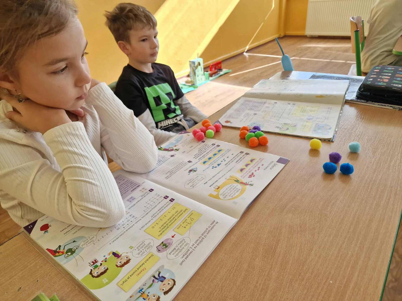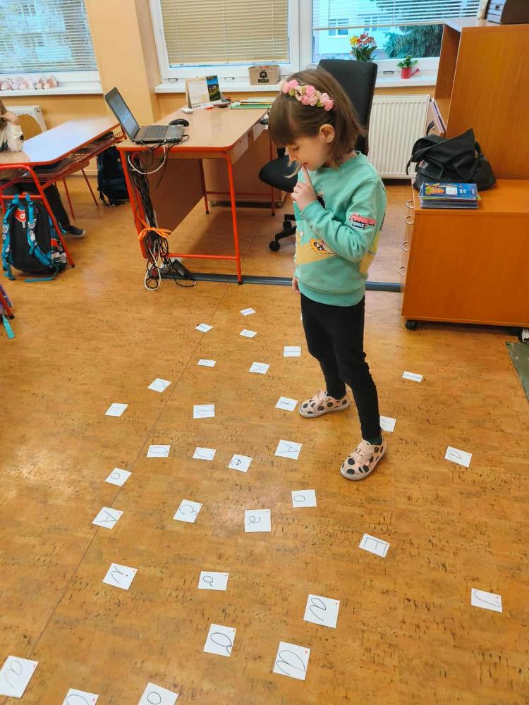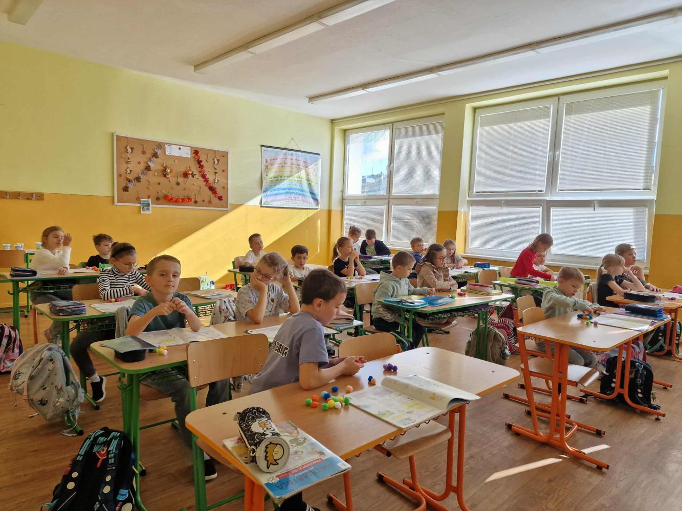 V druhej časti hodiny žiaci hľadali výsledky aj na číselnom rade umiestnenom na zemi. Hravou formou si tak precvičili sčítanie a odčítanie do 20 s prechodom cez 10. Žiaci pracovali s nadšením, spolupracovali v tímoch a učenie prebiehalo aktívne a zábavne.
