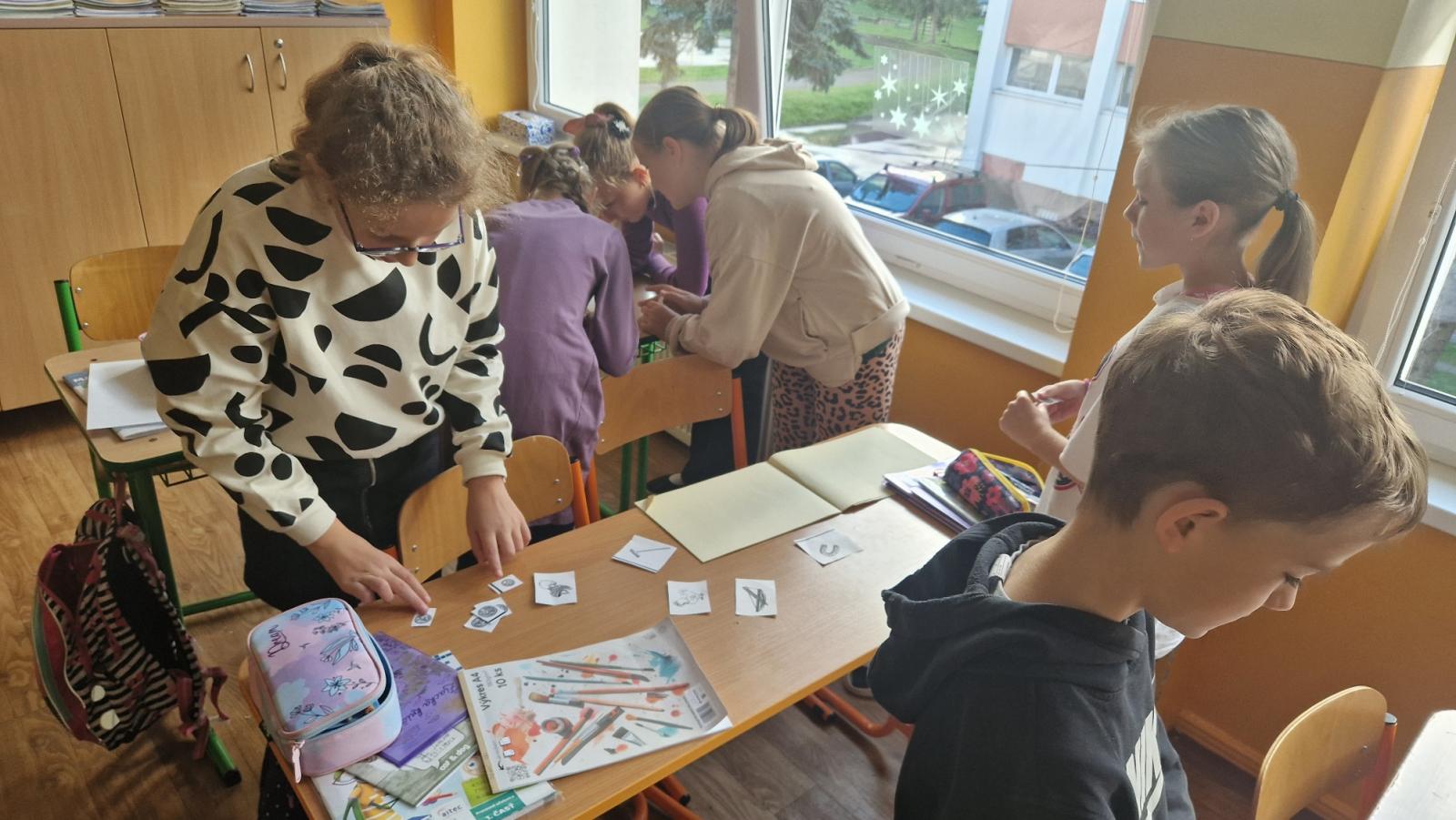 Žiaci na hodine matematiky pracovali v skupinách rozdelených podľa farieb. Úlohou každej skupiny bolo správne vyhľadať výsledky príkladov na tabuli, ktoré im učiteľka zadávala. Vyhrala a jednotku získala skupina, ktorá označila najviac správnych výsledkov.