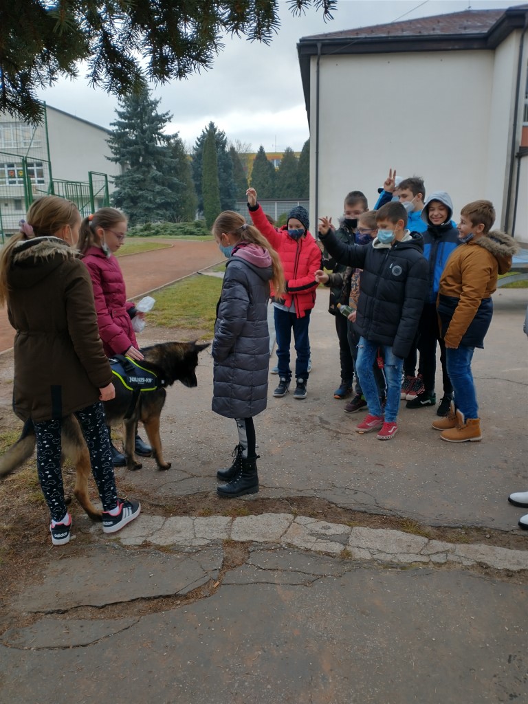 Všetkých milo prekvapila práve Vaneska. Svoj projekt o jej miláčikovi - belgickom ovčiakovi menom Bony poňala netradične. Na hodinu biológie priviedla na školské ihrisko svojho 4-nohého kamaráta, ktorého úplne sama trénuje už 6 a pol roka. Na úvod ho zoznámila so svojimi spolužiakmi. Deti mali možnosť pohladkať psíka a nadviazať s ním priateľský kontakt..