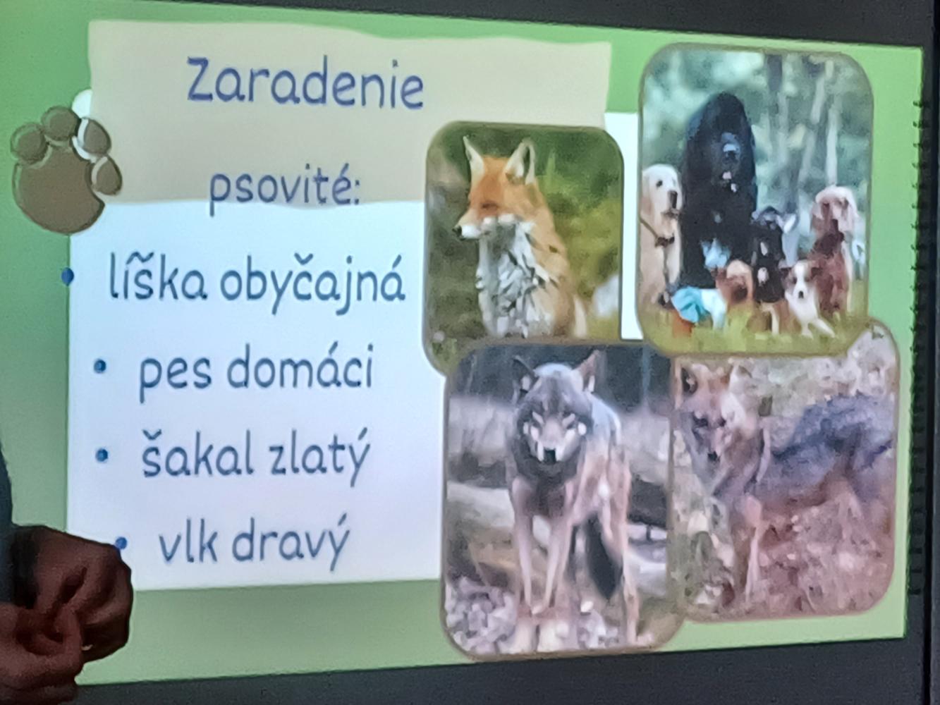 Dňa 7.12.2023 zavítala na našu školu pani Katarína Kyselová zo Štátnej ochrany prírody Kysuce stretnutie so žiakmi 6.A a 6.B triedy sa uskutočnilo formou prednášky vo vlastných triedach na tému - vlčie rodiny. Žiaci sa dozvedeli cenné informácie zo života vlčích rodín. Okrem prezentácie mali možnosť vidieť aj naozajstnú vlčiu lebku, sadrový odtlačok vlčej laby a taktiež si vypočuli ozajstné vlčie zavýjanie a pokúšali sa uhádnuť, koľko vlkov naraz v ukážke zavýjalo.... Prednáška bola zaujímavým spestrením vyučovania pre našich šiestakov.