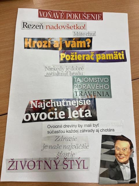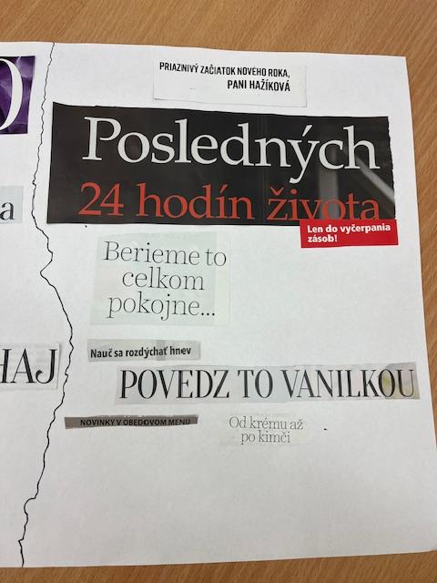 6. B opäť prekvapila svojou neuveriteľnou kreativitou a nadšením, keď sa pustila do tvorby nezvyčajných básní. Náš kreatívny experiment začal vystrihovaním nadpisov z časopisov, ich triedením, hľadaním významových súvislostí a spájaním tak, aby vznikla báseň s pointou. Počiatočná neistota sa napokon pretavila do vydareného výsledku. Niektorí žiaci sa rozhodli zamerať na určitú tému, ktorú našli v nadpisoch, zatiaľ čo iní sa nechali unášať tokom myšlienok a pustili sa do voľnejších básní. Navyše tento proces nebol len o vytvorení básne, ale aj spolupráci, dohode, výmene nápadov a o podpore ich vyjadrovacích schopností. Táto aktivita nám ukázala, že aj taký predmet akým je slovenčina ponúka priestor pre budovanie kreativity a sebarealizácie.