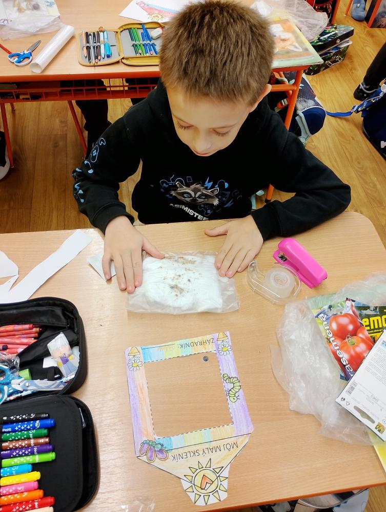 Naši druháci sa dnes zmenili na malých záhradníkov. Rozprávali sme sa o rastlinách, semienkach a o tom, čo im stačí, aby vyklíčili. Každý žiak si vyrobil svoj vlastný malý skleník so semienkami. Deti pracovali s veľkým nadšením a vytvorili krásne diela, na ktoré môžu byť právom hrdé.