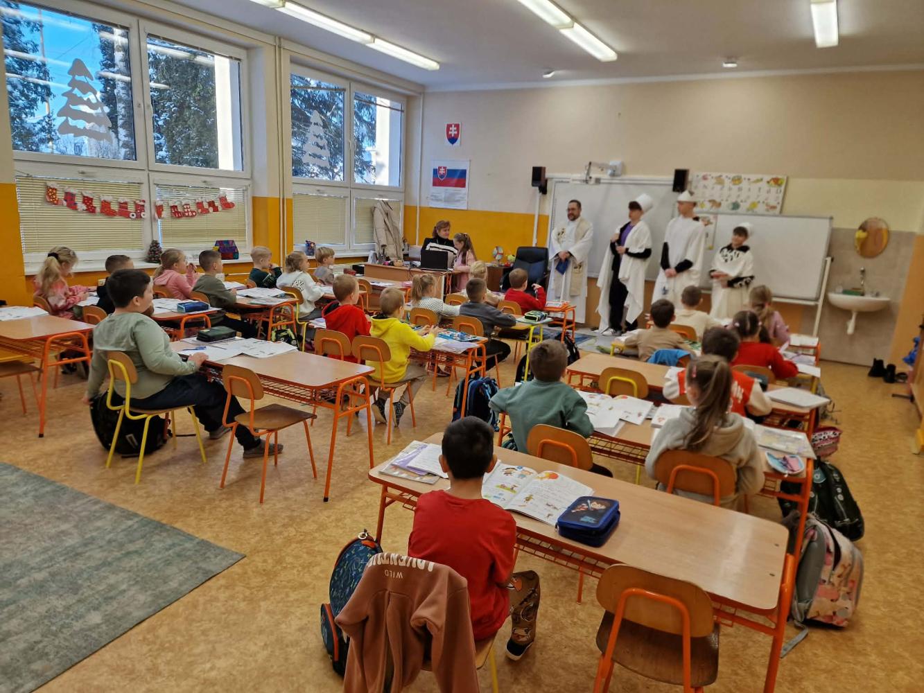 Na Základnej škole Clementisova sme si opäť pripomenuli sviatok Troch kráľov. Žiaci deviateho ročníka recitovali krátke veršíky pre povzbudenie žiakov do ďalšieho roka. Pán kaplán, Zdenko Králik, požehnal všetky triedy. Ďakujeme mu za jeho čas, ktorý nám venoval a tešíme sa opäť na budúci rok.