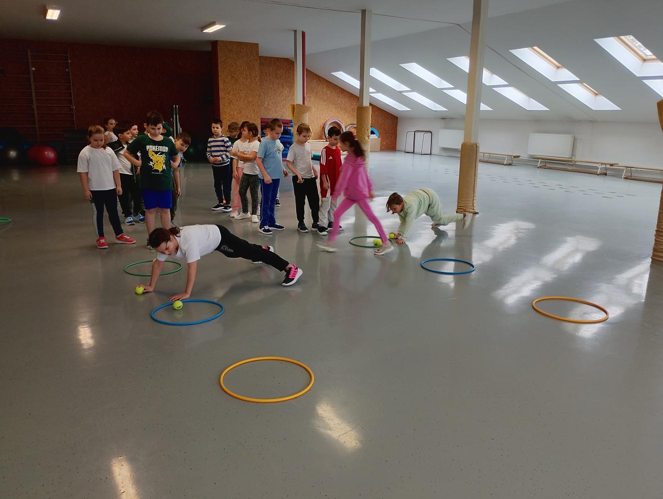 Na hodine telesnej výchovy sme si so žiakmi 2.B triedy užili množstvo zábavných pohybových hier. Deti sa s nadšením zapájali do aktivít, výborne si zacvičili a súťažili v družstvách. Nechýbal smiech, radosť z pohybu ani vzájomné povzbudzovanie. Prostredníctvom hier si žiaci rozvíjali pohybové schopnosti, tímového ducha a zásady fair play.