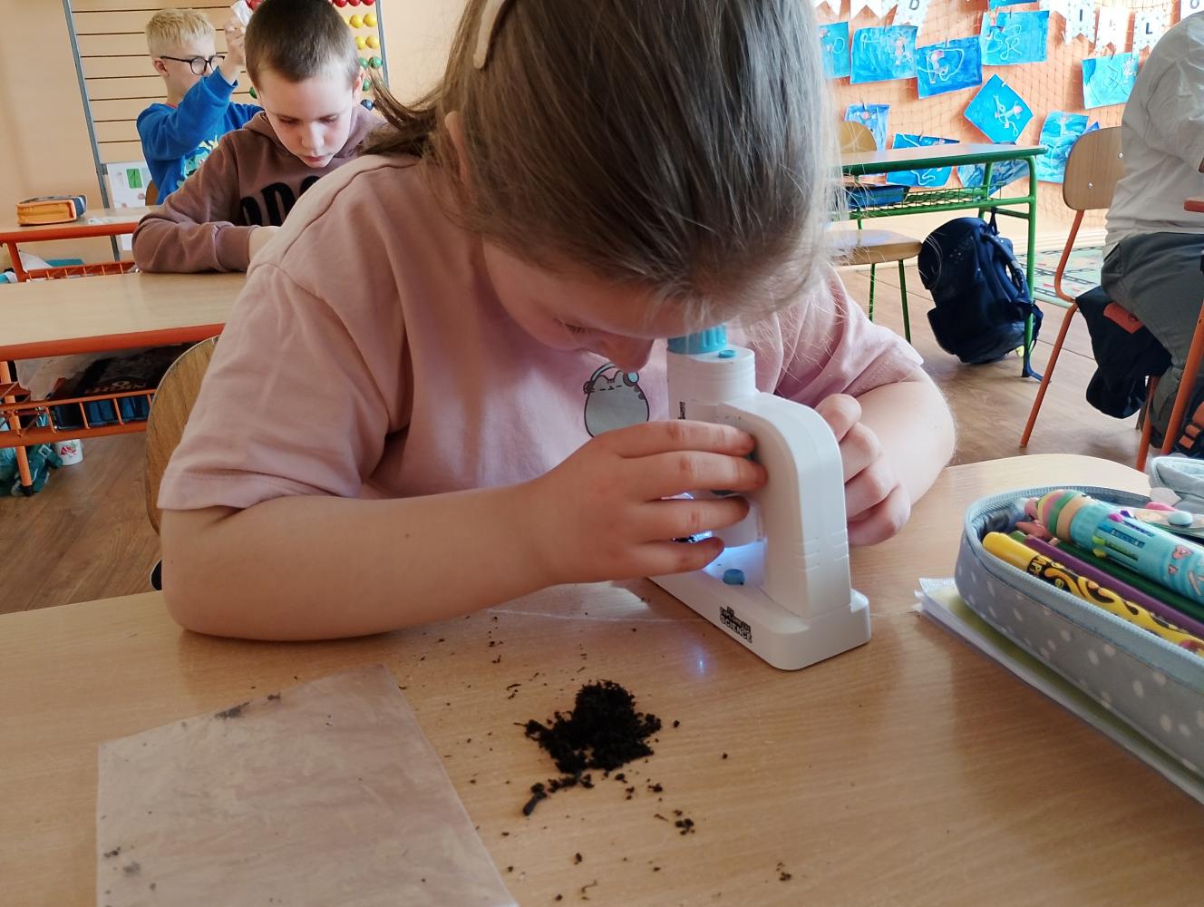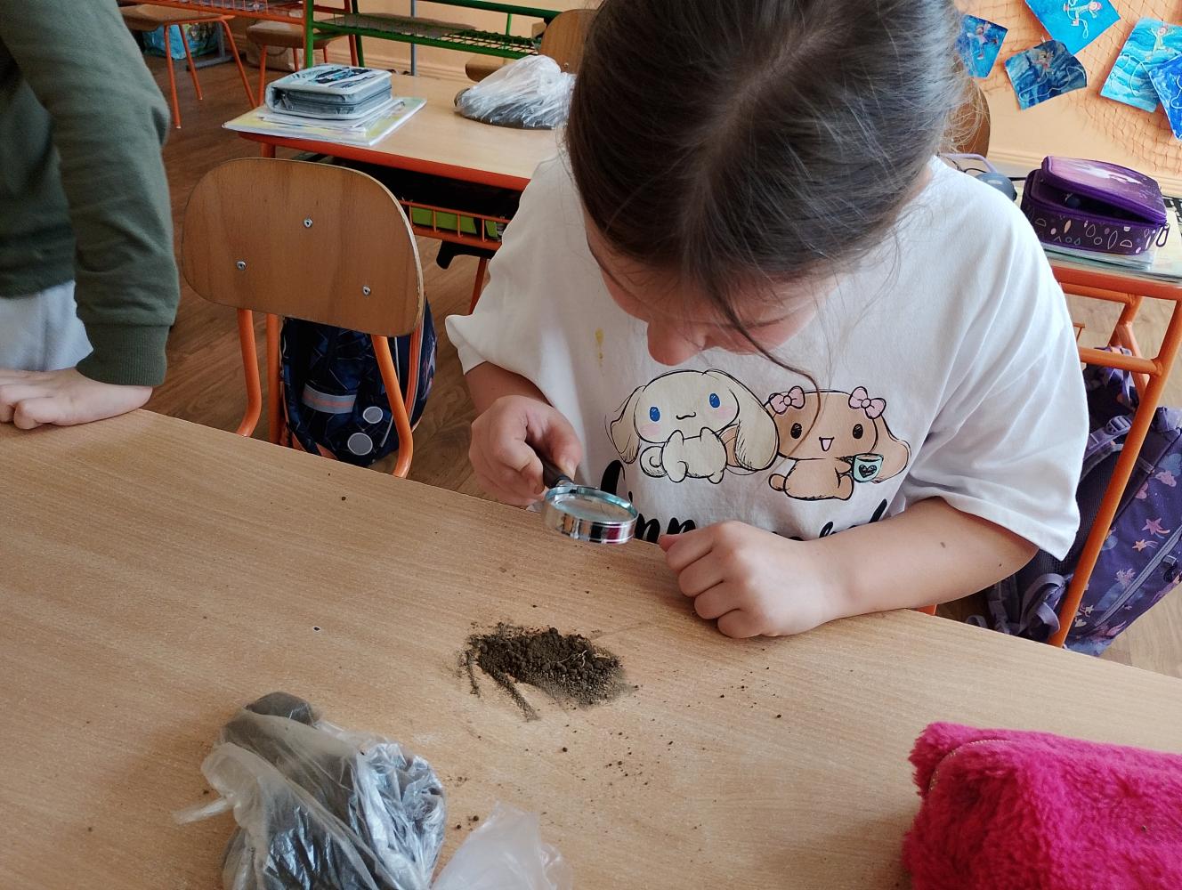 Na hodine prvouky v 2.B sme skúmali pôdu. Žiaci si priniesli vrecko s pôdou a pomocou lupy ju pozorovali ako malí vedci. Skúmali, z čoho sa pôda skladá, a zisťovali sme aj prítomnosť vody v pôde. Objavovanie bolo plné zábavy, radosti a spolupráce. Deti pracovali s veľkým nadšením a učenie sa premenilo na malé dobrodružstvo.