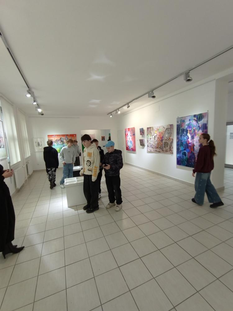 V druhej časti exkurzie navštívili galériu na mestskom úrade, kde si prezreli výstavu obrazov maliara Ondreja Zimku – rodáka z Turzovky, manžela slovenskej herečky Milky Zimkovej a otca maliarky Miliny Zimkovej. Pri prehliadke mohli sledovať prácu s farbami a ich rôzne kontrasty.