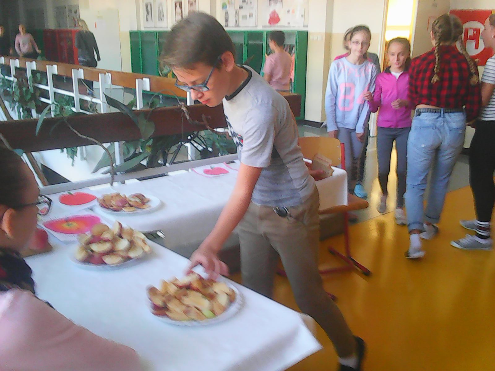 V školskom sade dozreli aj tento rok chutné jabĺčka. K úrode zo starých jabloní pribudli plody z nových stromov, zarodila hlavne zimná odroda Selena. Ochutnávka úrody z našich školských jabloní prebehla vo vestibule školy dňa 17.10. 2018.Všetci žiaci mali možnosť vychutnať si šťavnaté plody bez chemického ošetrenia do sýtosti, čo aj využili. Dokonca dopyt detí po jabĺčkach presahoval ponuku. Mnohí žiaci uprednostnili naše „domáce“ chutné ovocie pred sladkosťami. Je to dôkaz, že pri správnej motivácií deti vedia zmeniť k lepšiemu svoje stravovacie návyky. Tešíme sa na ďalší ročník jabĺčkového dňa, ktorý sa na našej škole stáva tradíciou.