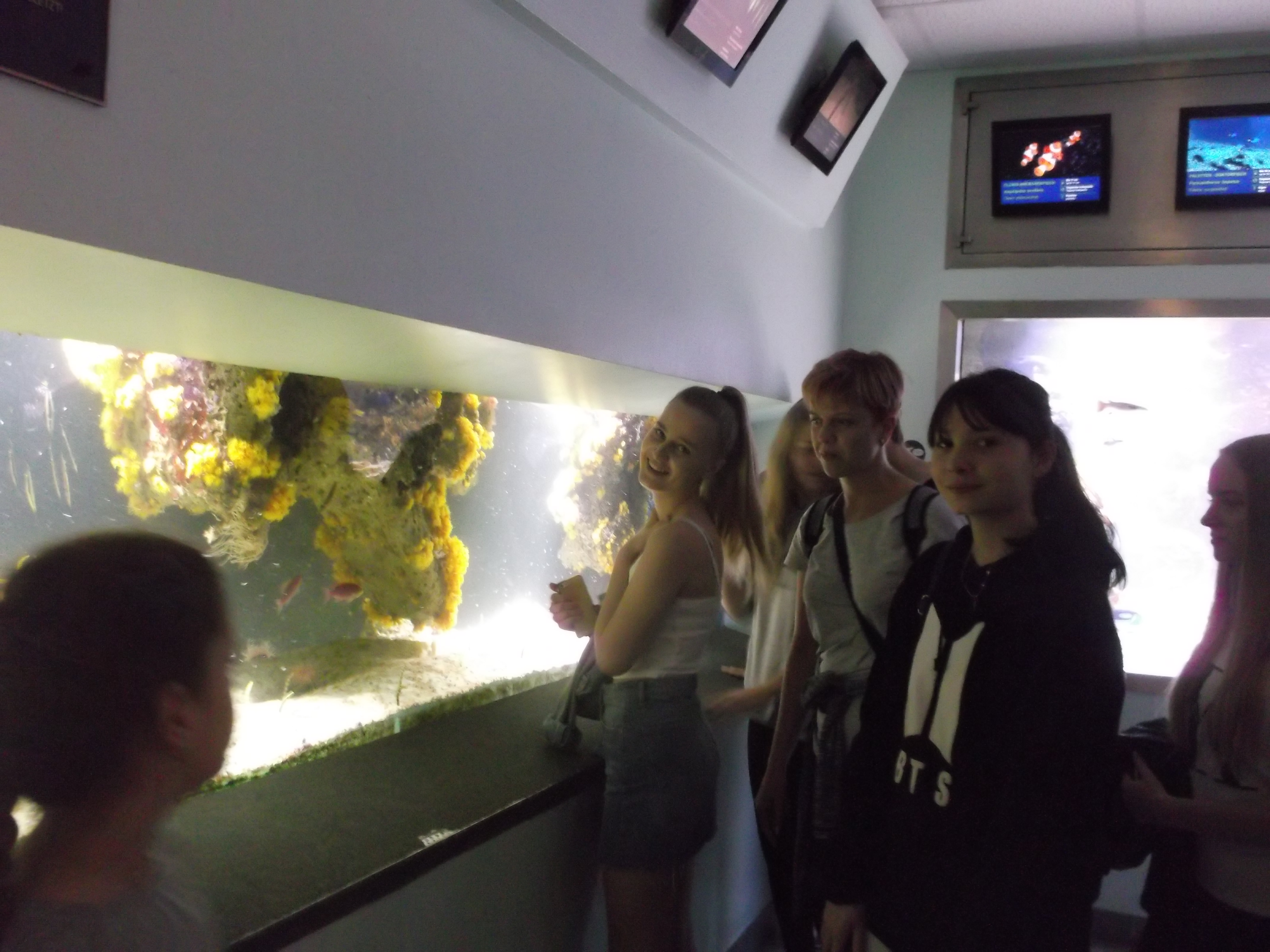 Piatok, 4.máj, sa pre nás – 52 žiakov a 6 dospelých - začal mimoriadne skoro. Už o 6,30 ráno sme vyštartovali na exkurziu do Viedne. Štvorhodinová cesta autobusom ubiehala bez problémov a pokojne. Pred jedenástou hodinou sme sa dostali do cieľa, ktorým bol DOM MORA vo VIEDNI. Rozdelili sme sa na dve skupiny a každá skupina dostala sprievodcu. Mohli sme si vybrať, či jeho výklad bude v nemčine alebo v angličtine. Zvíťazila angličtina, ktorá bola dobre zrozumiteľná hádam pre všetkých, keďže sa na našej škole vyučuje od prvého ročníka. Niektorí žiaci sa aktívne zapájali a diskutovali so sprievodcom, iní len počúvali zaujímavé informácie, ktoré nám ponúkol. Dom mora je úžasná expozícia morských živočíchov, ktorú sa oplatilo navštíviť. Sídli v unikátnej desaťposchodovej budove, ktorá mala pôvodne slúžiť na protileteckú obranu. Aj vďaka tejto neobvyklej architektúre je možné, aby sa najväčšie akvárium rozprestieralo cez dve podlažia. Jednotlivé poschodia sú tematicky rozdelené. Vo veľkej nádrži na prízemí nájdeme akvárium so žralokmi, ďalej nádrže s piraňami a množstvo iných morských aj sladkovodných rýb. Okrem vodných živočíchov sú tu však aj teráriá s pavúkmi, hadmi a inými plazmi vrátane krokodílov. Všetky zvieratá však nie sú zatvorené, môžeme tu stretnúť voľne lietajúce papagáje či pobehujúce opičky, ktoré si pri troche šťastia dokážete aj pohladiť. Medzi poschodiami sa môžete presúvať výťahom alebo schodmi. Najlepšie je vyviesť sa výťahom na strechu, kde je perfektná vyhliadka na celé mesto (smola, že začalo zrovna poprchať) a dolu ísť už po schodoch, na ktorých je tiež mnoho zaujímavých informácií a exponátov. Fotenie je povolené, kvôli zvieratám však nie s bleskom, čomu zodpovedá aj „kvalita“ priložených fotografií. Na spiatočnej ceste sme mali v pláne navštíviť ešte Prírodovedné múzeum v Bratislave. Ale tu nás šťastena aj dobrá nálada opustila. V Bratislave sme sa dostali do dopravnej zápchy a cez celé mesto sme sa presúvali takmer krokom. Stratili sme dve hodiny a múzeum sme už nestihli. Možno nabudúce.